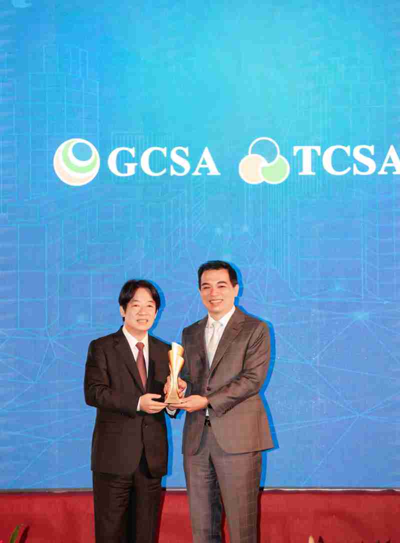 达全方位永续表现获全球永续奖及台湾永续奖肯定,,,,由副总统赖清德颁奖 (左),,,,森林舞会总经理柯富仁 (右) 代表领奖